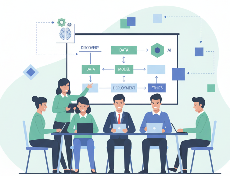 Our approach prioritizes ethical considerations from the design phase through deployment. We implement fairness metrics, bias detection, explainability features, and governance frameworks that ensure AI systems are trustworthy and responsible.