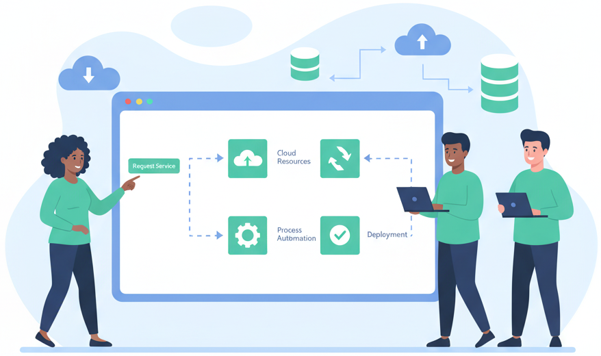 We build comprehensive self-service capabilities that reduce bottlenecks and improve developer productivity:
