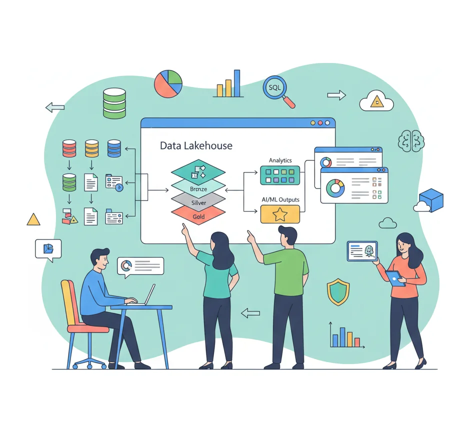 Our Modern Data Platform services focus on delivering a comprehensive, production-ready data intelligence platform using Databricks. We go beyond basic setup to architect a unified, business-centric lakehouse that is built for your specific needs. We deliver an open, scalable, and cost-efficient platform that powers automated data engineering, enables self-service analytics and AI, and provides a clear path to value with accelerators for governance, FinOps, and MLOps. Our platforms reduce time-to-insight, lower your total cost of ownership, and create a future-proof foundation for innovation.