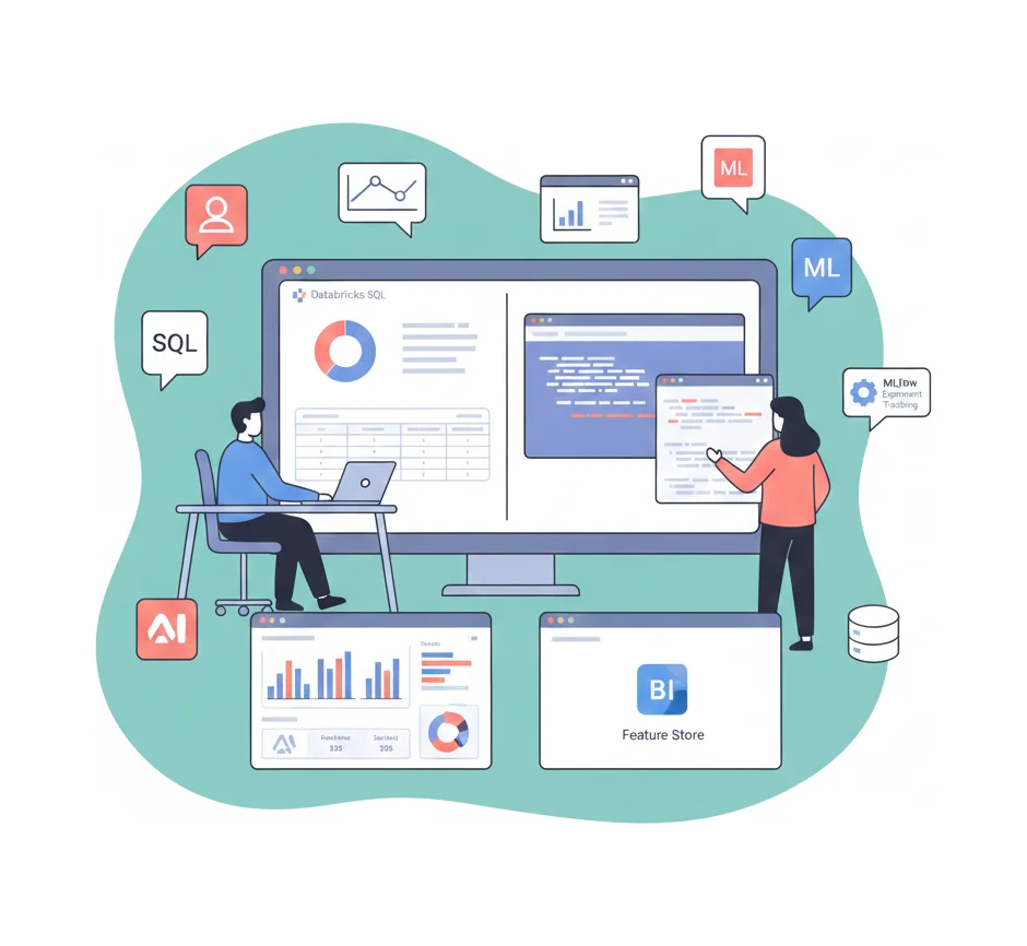 - Databricks SQL & Warehouses: Enabling business users with serverless SQL warehouses and seamless integration with BI tools like Tableau, Power BI, and Looker.