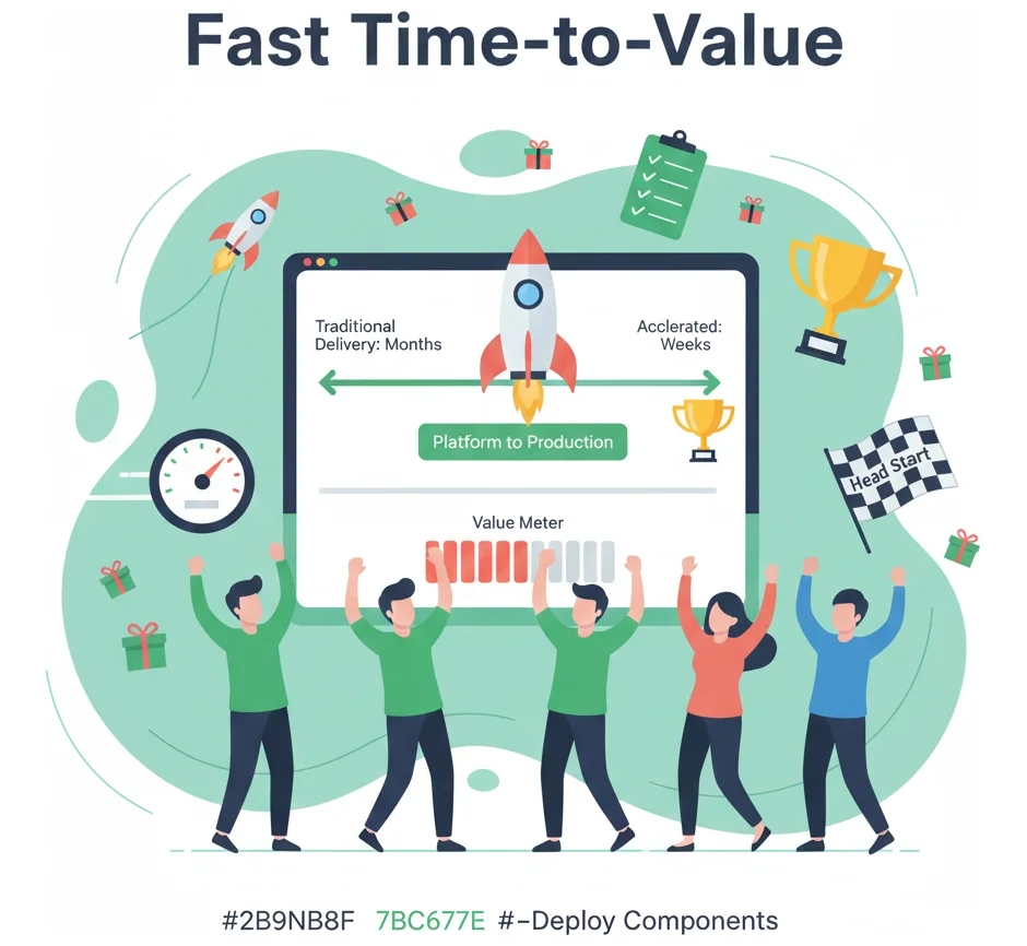 We don’t just build platforms; we accelerate your time-to-value. Our proven frameworks and pre-built accelerators for automated governance and FinOps are based on best practices from dozens of successful implementations, giving you a head start on platform maturity and ROI.